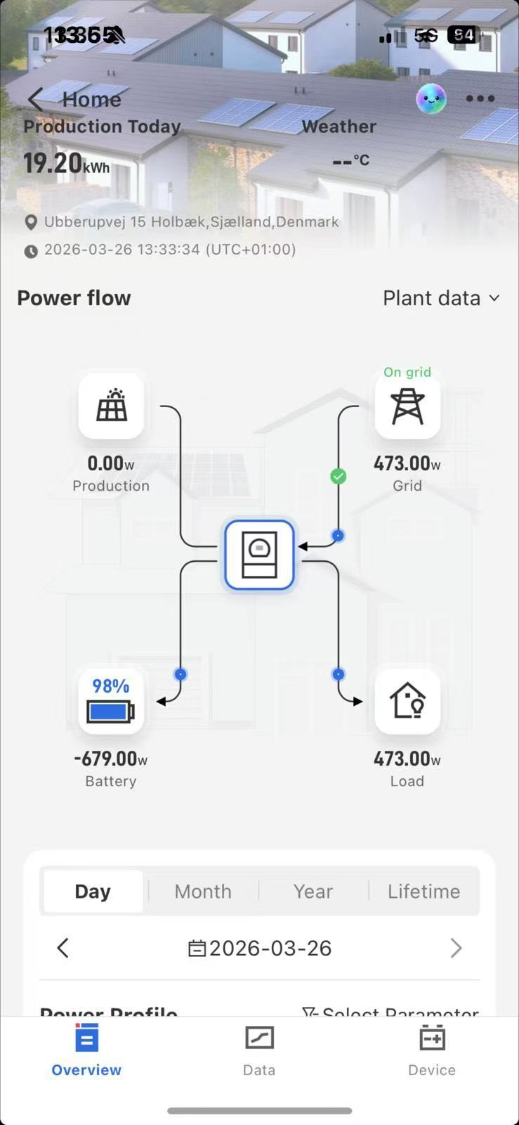 부하를 제공하기 위한 그리드 공급과 배터리 방전. 이 고객입니다 - '세대 없음' 증상이 감지되었습니다.