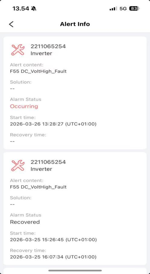 이 경우 주거용 PV 저장 시스템은 주간의 높은 복사조도 기간 동안 내보내기를 반복적으로 중단했습니다. 원격 모니터링으로 경보가 발생했습니다. 세 개는 - 사이트 스크린샷은 완전한 증거 체인을 형성하고 핵심 문제를 명확하게 보여줍니다.