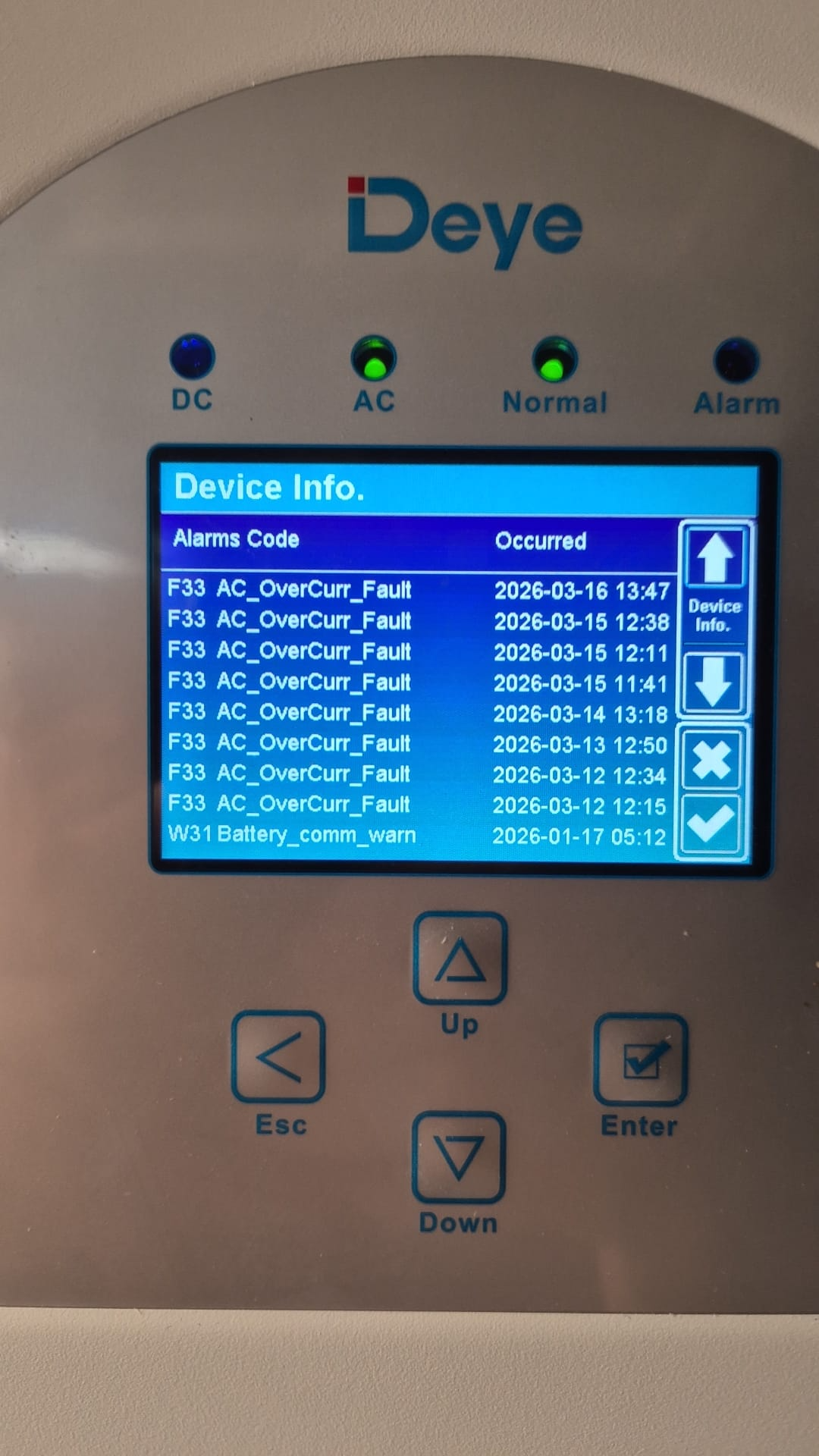 현장 서비스는 가장 빠른 가정에 거의 보상하지 않습니다. 언뜻 보기에는 이상해 보이는 경보가 일단 전기 경로를 이해하면 평범한 것으로 판명되는 경우가 많습니다. F33은 바로 그 범주에 속합니다. 일부 Deye 하이브리드 인버터 제품군에서는 코드가 AC_OverCurr_Fault로 나열됩니다. 다른 제품군에서는 번호 지정이 약간 바뀌지만 실제 교훈은 거의 동일합니다. 즉, 기계가 이벤트를 잘못 보고했다고 결론을 내리기 전에 AC 쪽부터 시작합니다.